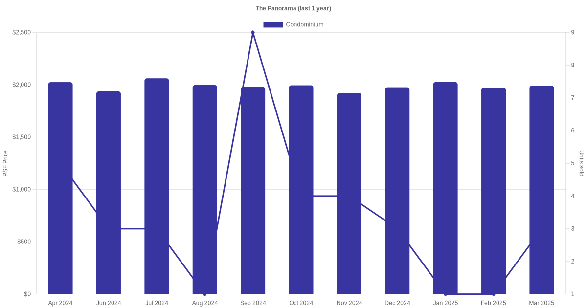 There were a total of 107 sales transactions for The Panorama in the last 3 years, with the latest one recorded in Dec 2025. Disclaimer : our transactions data below does not include block numbers as the data is not available. If you would like to see a list of blocks / addresses associated with The Panorama, please click here.