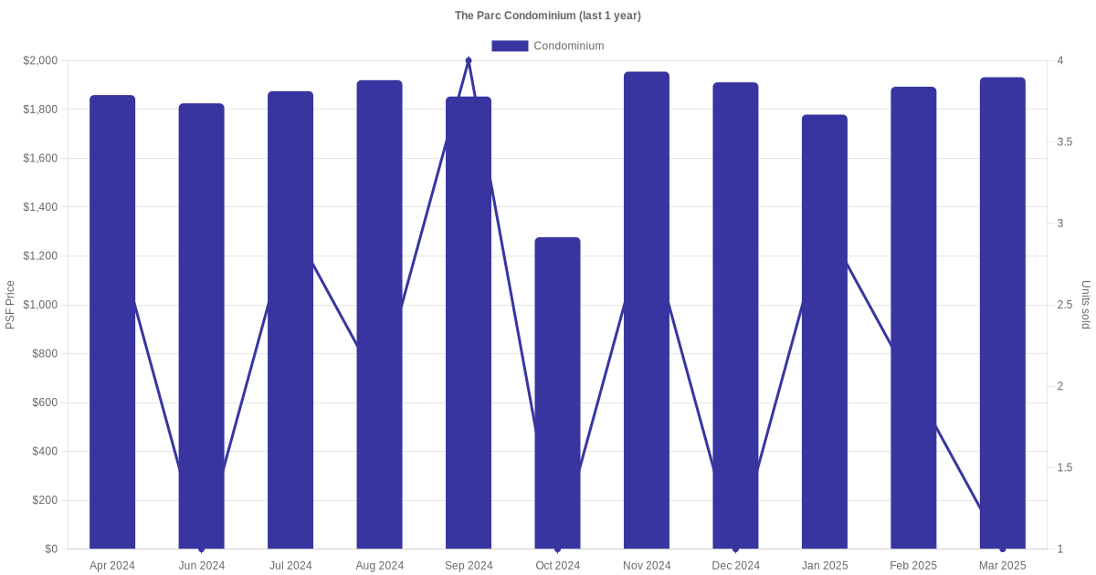 The graph below shows the average monthly transacted sale price for each of the condominium units for The Parc Condominium in the last 3 years. This is based on the transactional data collated for The Parc Condominium for the selected period.