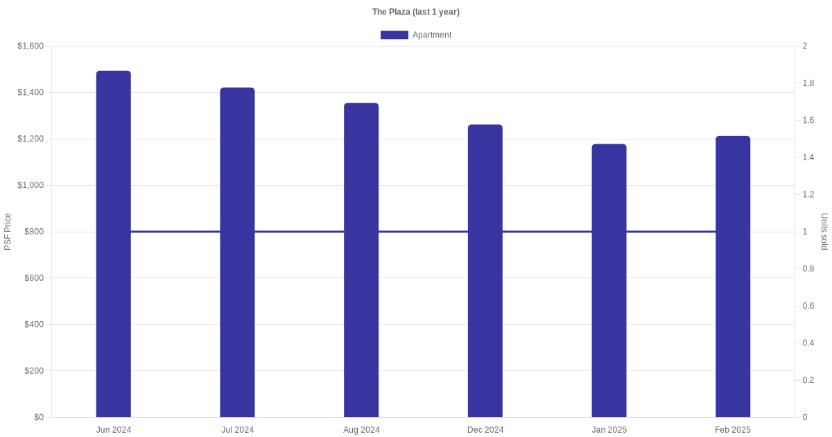 There were a total of 17 sales transactions for The Plaza in the last 3 years, with the latest one recorded in Dec 2025. Disclaimer : our transactions data below does not include block numbers as the data is not available.