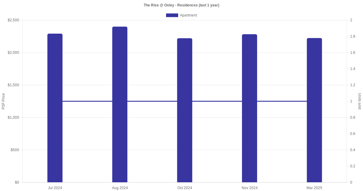 There were a total of 13 sales transactions for The Rise @ Oxley - Residences in the last 3 years, with the latest one recorded in Dec 2025. Disclaimer : our transactions data below does not include block numbers as the data is not available.