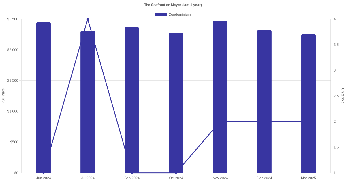| Aug 2025 | $2,610,000 (Resale) | $2,449 | Condominium | The Seafront on Meyer Meyer Road (District 15) | 21-25 | 1066 sqft | Freehold | - |