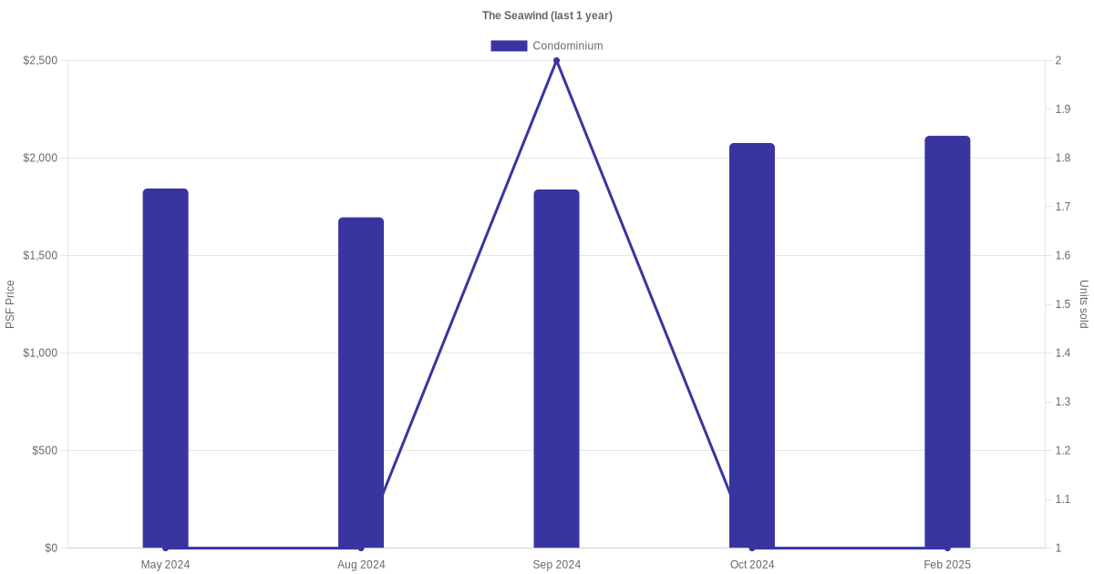 There were a total of 19 sales transactions for The Seawind in the last 3 years, with the latest one recorded in Nov 2025. Disclaimer : our transactions data below does not include block numbers as the data is not available.