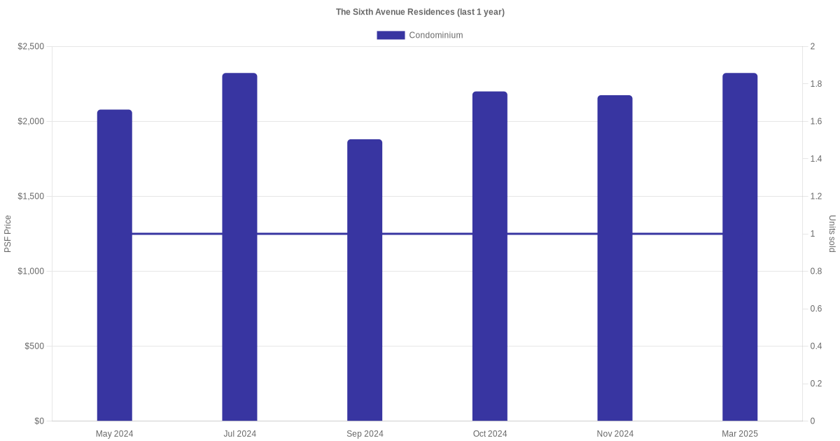 Summary of sales transactions for The Sixth Avenue Residences (last 3 years)