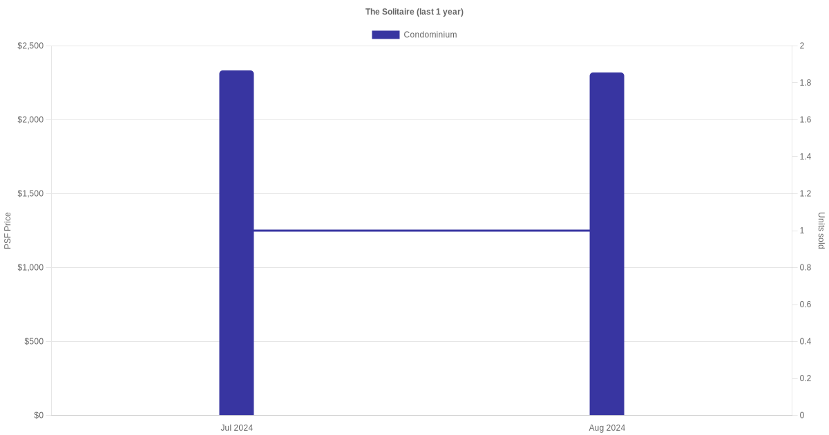 There were a total of 6 sales transactions for The Solitaire in the last 3 years, with the latest one recorded in May 2025. Disclaimer : our transactions data below does not include block numbers as the data is not available.