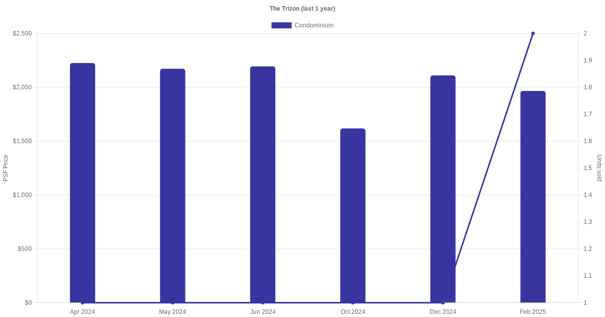 The graph below shows the average monthly transacted sale price for each of the condominium units for The Trizon in the last 3 years. This is based on the transactional data collated for The Trizon for the selected period.