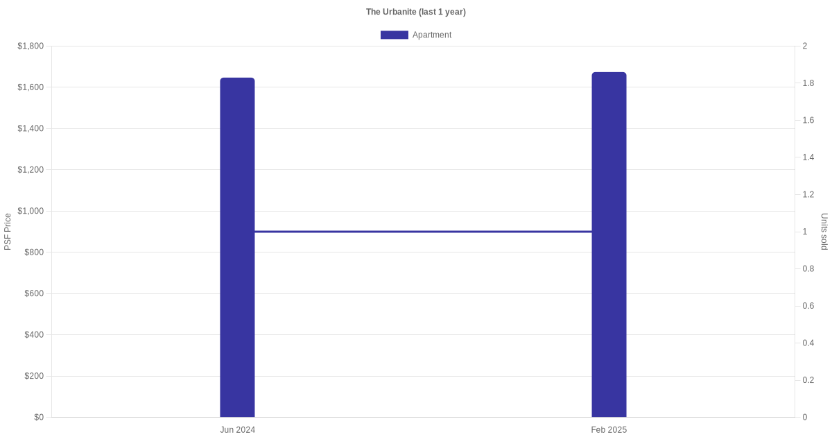 There were a total of 4 sales transactions for The Urbanite in the last 3 years, with the latest one recorded in Feb 2025. Disclaimer : our transactions data below does not include block numbers as the data is not available.