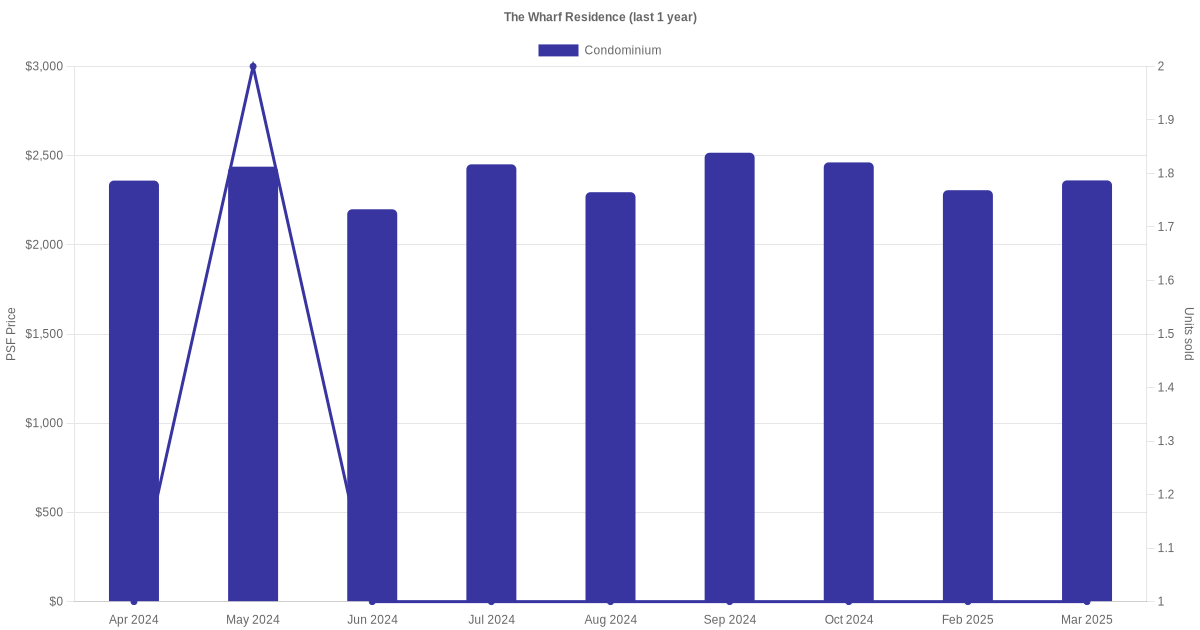 There were a total of 24 sales transactions for The Wharf Residence in the last 3 years, with the latest one recorded in Dec 2025. Disclaimer : our transactions data below does not include block numbers as the data is not available.