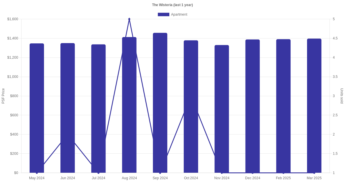 There were a total of 50 sales transactions for The Wisteria in the last 3 years, with the latest one recorded in Nov 2025. Disclaimer : our transactions data below does not include block numbers as the data is not available. If you would like to see a list of blocks / addresses associated with The Wisteria, please click here.