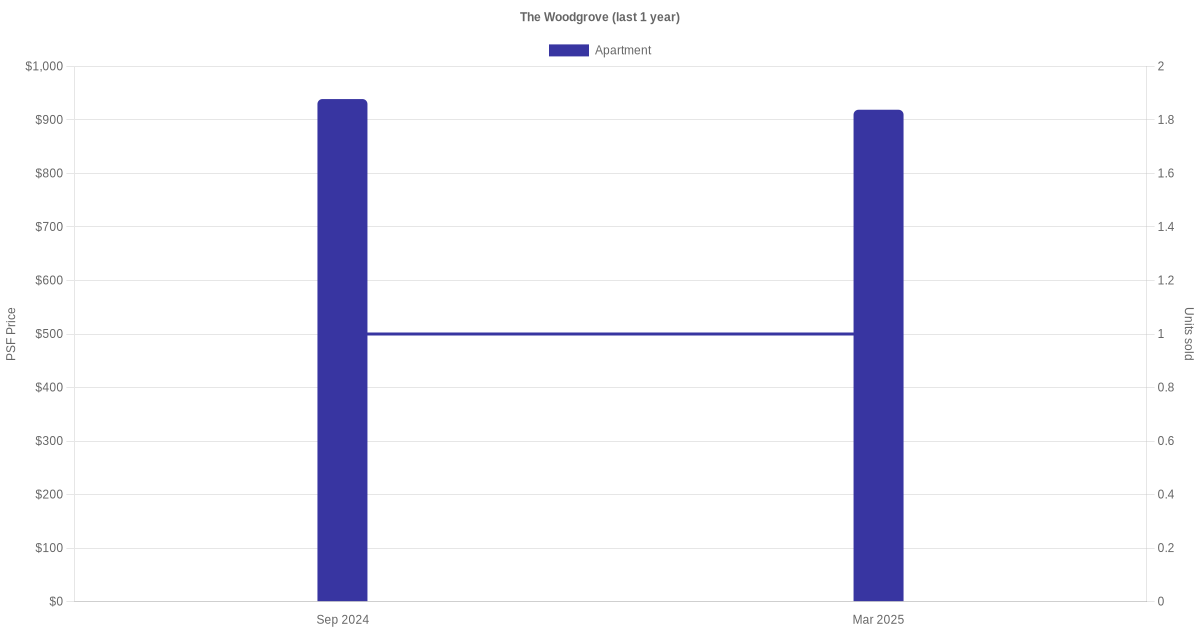 There were a total of 11 sales transactions for The Woodgrove in the last 3 years, with the latest one recorded in Dec 2025. Disclaimer : our transactions data below does not include block numbers as the data is not available.