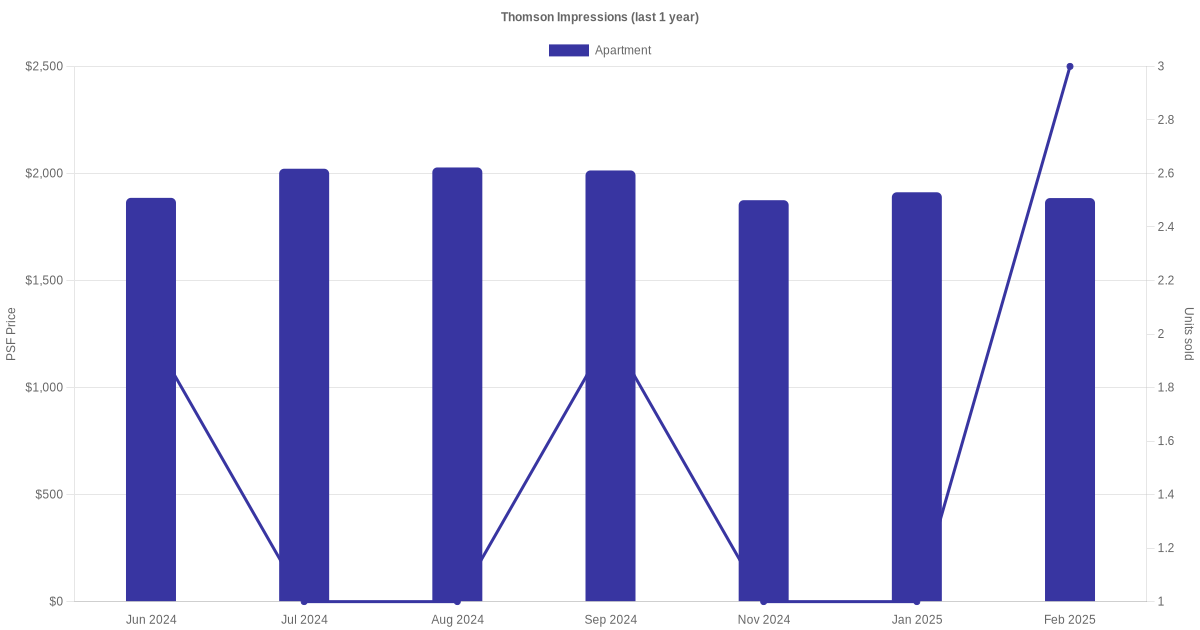 The graph below shows the average monthly transacted sale price for each of the apartment units for Thomson Impressions in the last 3 years. This is based on the transactional data collated for Thomson Impressions for the selected period.