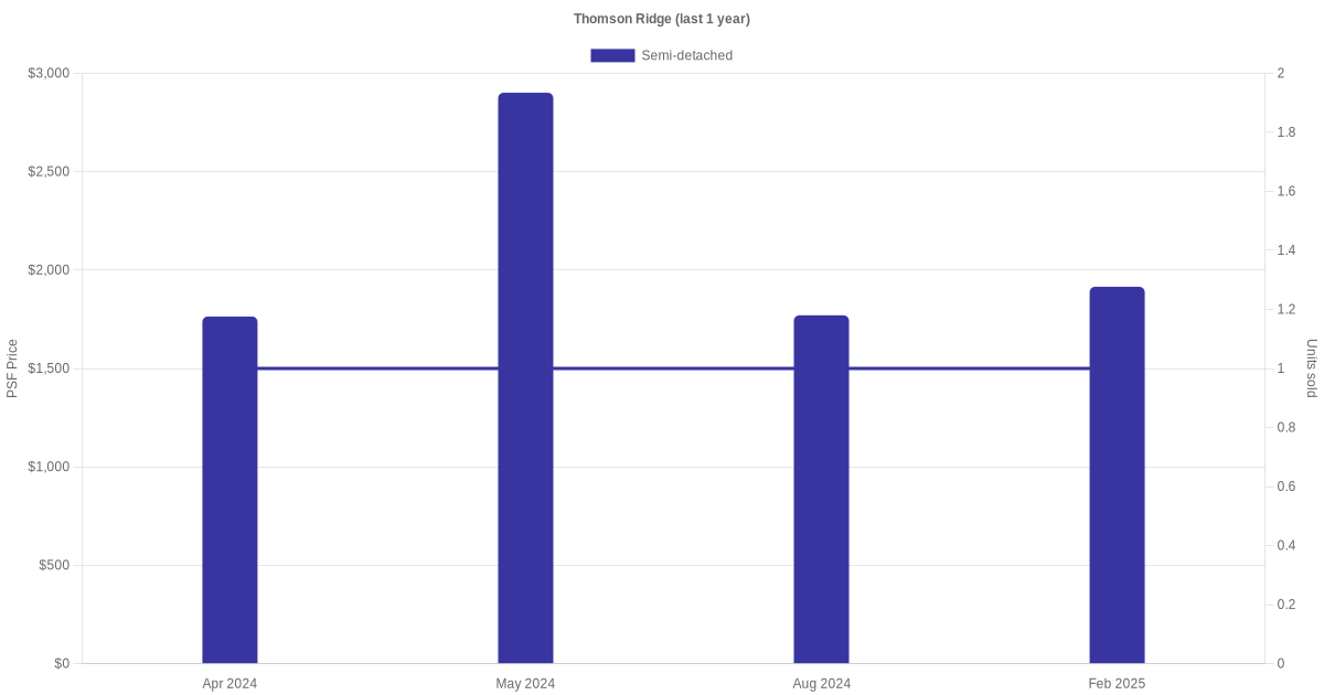 There were a total of 10 sales transactions for Thomson Ridge in the last 3 years, with the latest one recorded in Nov 2025. Disclaimer : our transactions data below does not include block numbers as the data is not available.