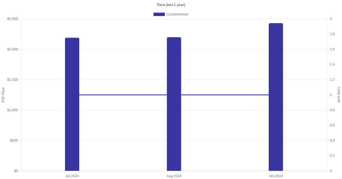 There were a total of 15 sales transactions for Tiara in the last 3 years, with the latest one recorded in Dec 2025. Disclaimer : our transactions data below does not include block numbers as the data is not available.