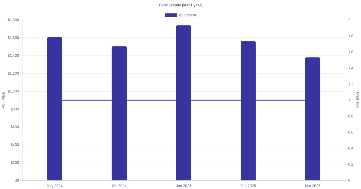 There were a total of 16 sales transactions for Tivoli Grande in the last 3 years, with the latest one recorded in Oct 2025. Disclaimer : our transactions data below does not include block numbers as the data is not available.