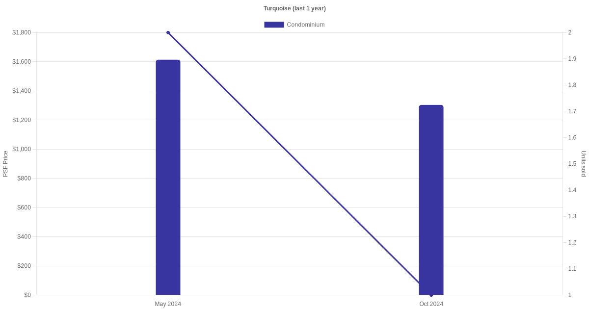 There were a total of 13 sales transactions for Turquoise in the last 3 years, with the latest one recorded in Dec 2025. Disclaimer : our transactions data below does not include block numbers as the data is not available.