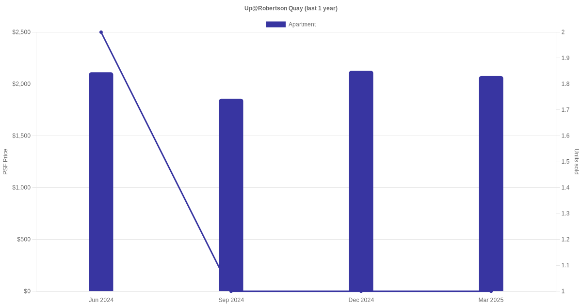 There were a total of 11 sales transactions for Up@Robertson Quay in the last 3 years, with the latest one recorded in Sep 2025. Disclaimer : our transactions data below does not include block numbers as the data is not available.