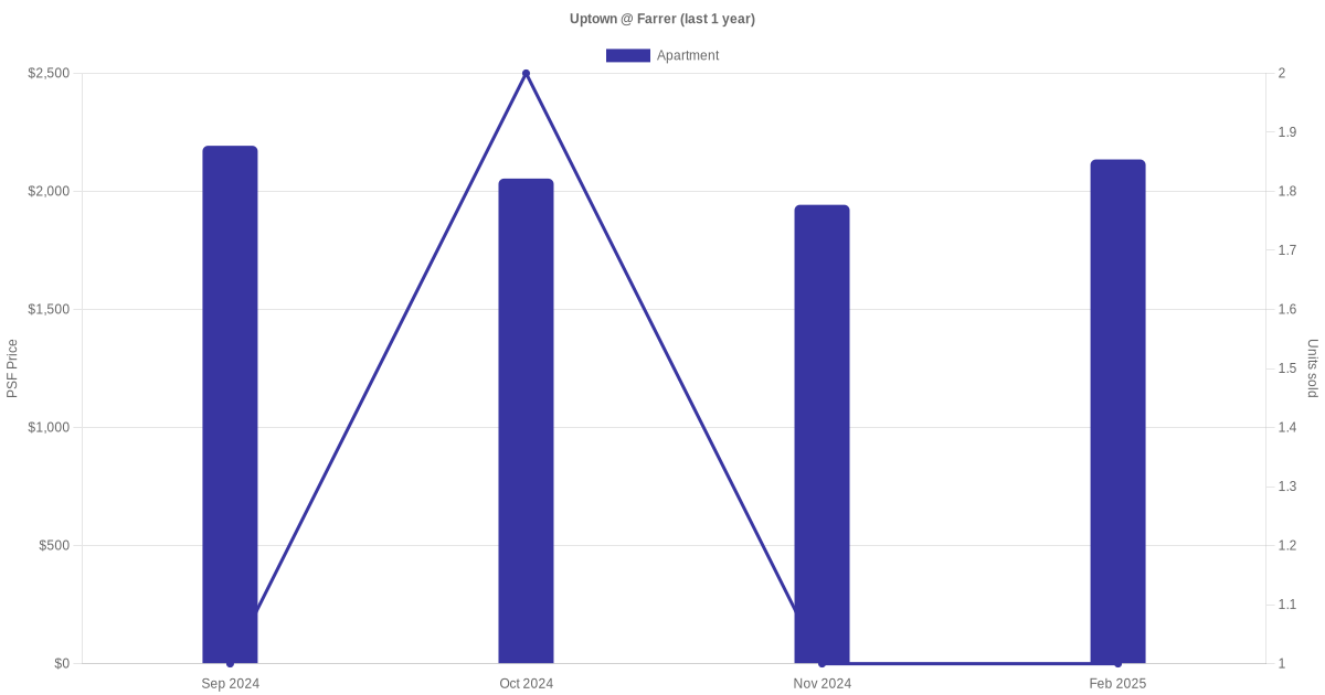 There were a total of 14 sales transactions for Uptown @ Farrer in the last 3 years, with the latest one recorded in Dec 2025. Disclaimer : our transactions data below does not include block numbers as the data is not available.