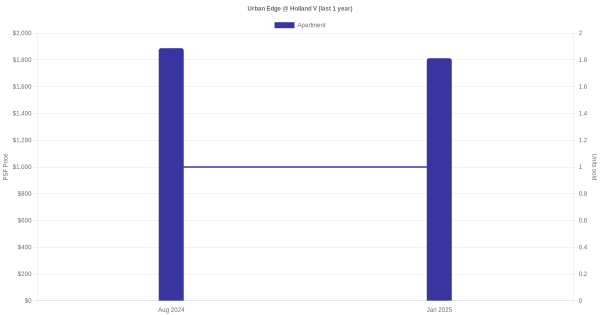 There were a total of 4 sales transactions for Urban Edge @ Holland V in the last 3 years, with the latest one recorded in Sep 2025. Disclaimer : our transactions data below does not include block numbers as the data is not available.