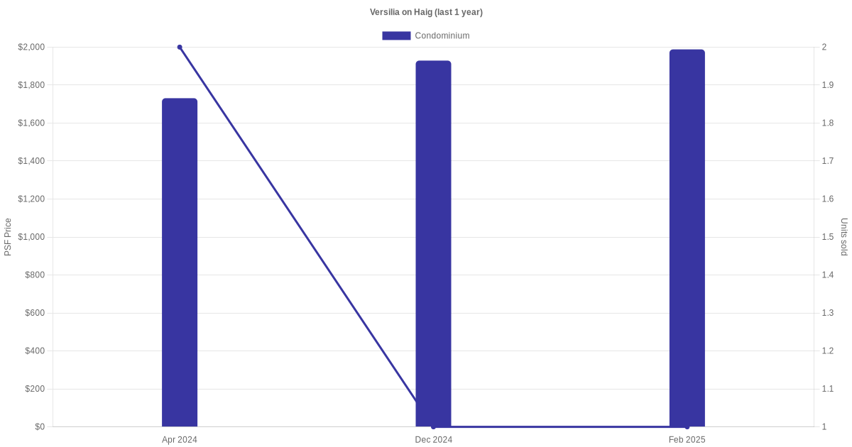 There were a total of 10 sales transactions for Versilia on Haig in the last 3 years, with the latest one recorded in Oct 2025. Disclaimer : our transactions data below does not include block numbers as the data is not available.