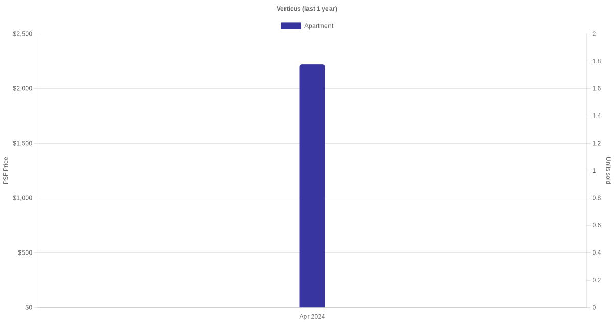 There were a total of 6 sales transactions for Verticus in the last 3 years, with the latest one recorded in Dec 2025. Disclaimer : our transactions data below does not include block numbers as the data is not available.