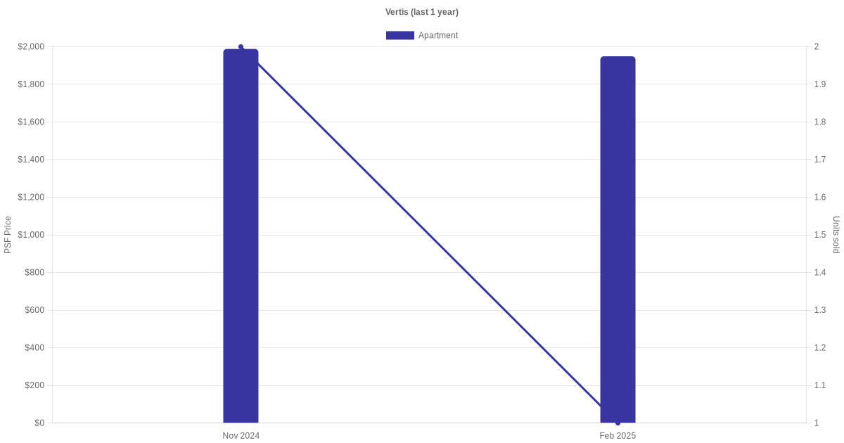 There were a total of 5 sales transactions for Vertis in the last 3 years, with the latest one recorded in Sep 2025. Disclaimer : our transactions data below does not include block numbers as the data is not available.