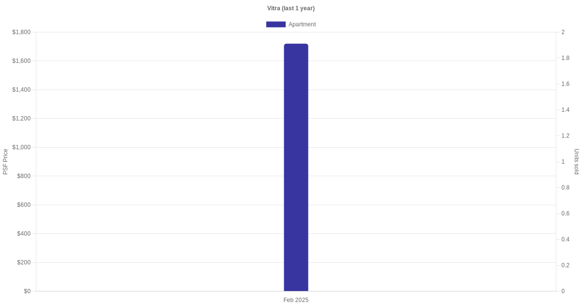 There were a total of 3 sales transactions for Vitra in the last 3 years, with the latest one recorded in Feb 2025. Disclaimer : our transactions data below does not include block numbers as the data is not available.
