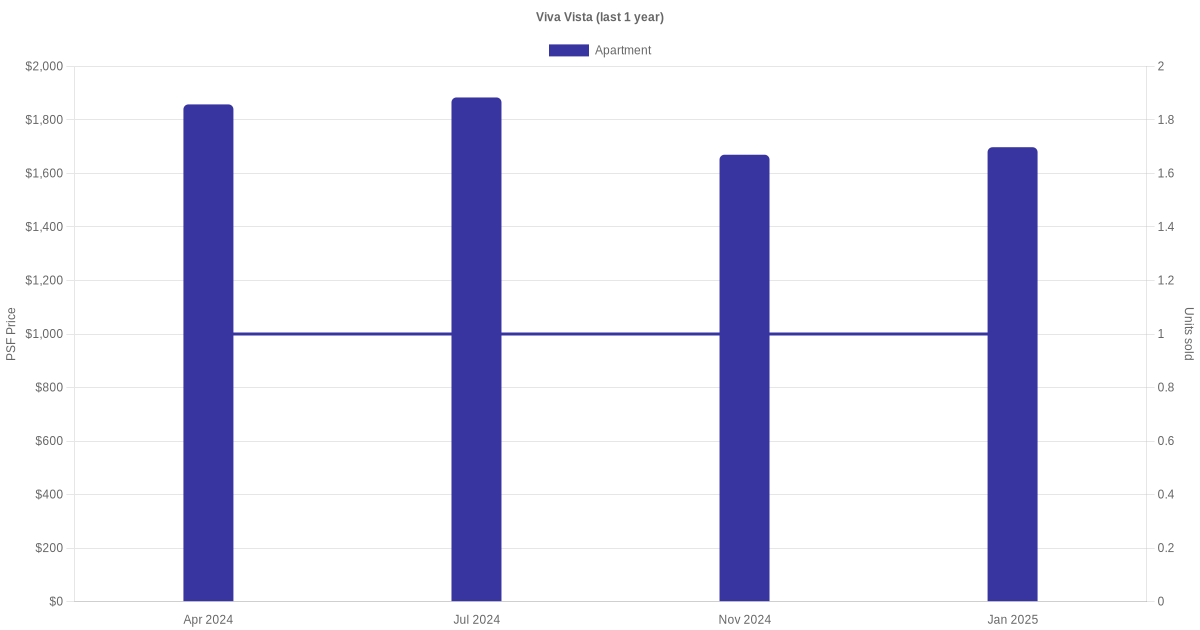 There were a total of 21 sales transactions for Viva Vista in the last 3 years, with the latest one recorded in Nov 2025. Disclaimer : our transactions data below does not include block numbers as the data is not available.