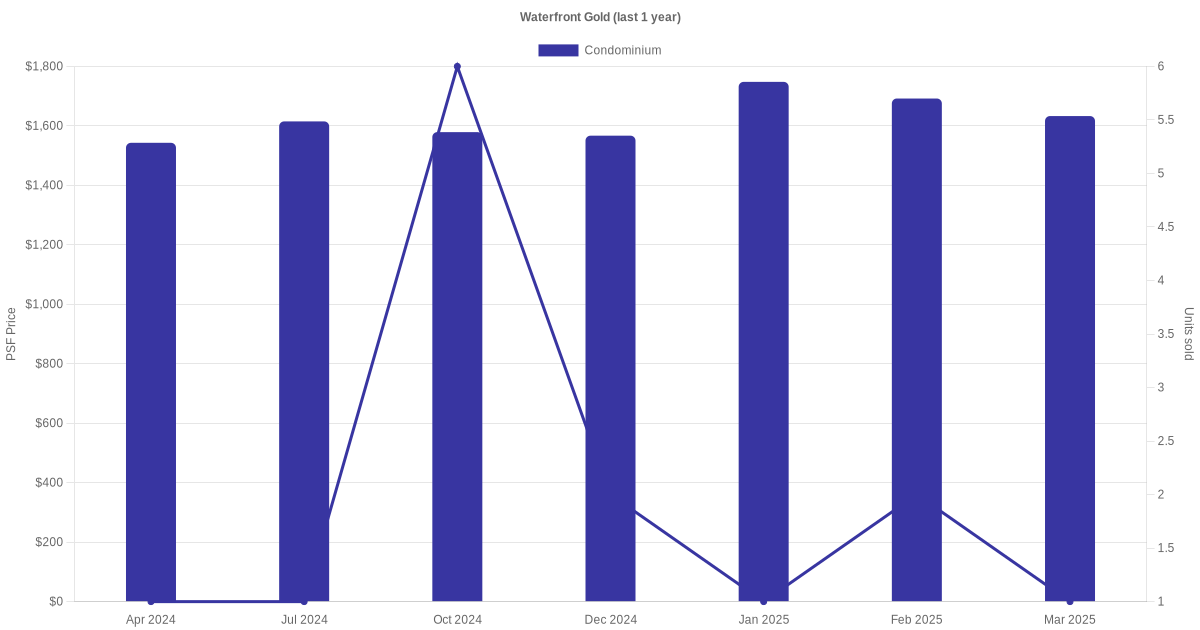 There were a total of 37 sales transactions for Waterfront Gold in the last 3 years, with the latest one recorded in Dec 2025. Disclaimer : our transactions data below does not include block numbers as the data is not available. If you would like to see a list of blocks / addresses associated with Waterfront Gold, please click here.
