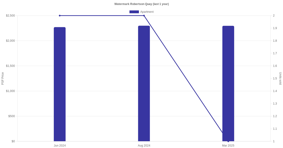 There were a total of 18 sales transactions for Watermark Robertson Quay in the last 3 years, with the latest one recorded in Dec 2025. Disclaimer : our transactions data below does not include block numbers as the data is not available.