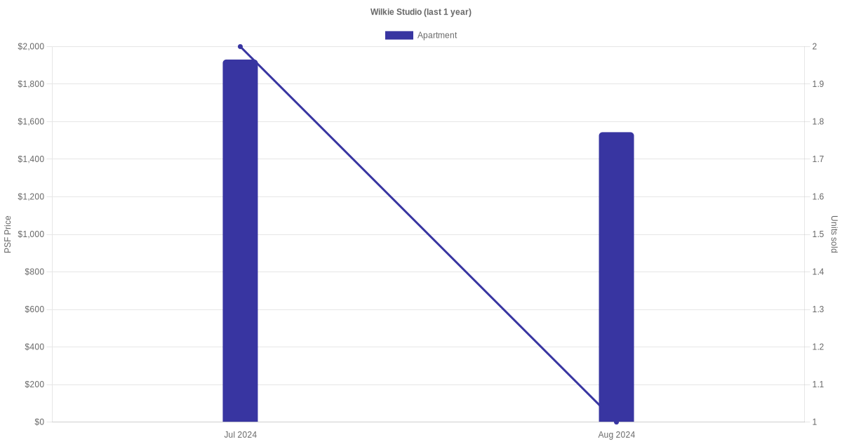 The graph below shows the average monthly transacted sale price for each of the apartment units for Wilkie Studio in the last 3 years. This is based on the transactional data collated for Wilkie Studio for the selected period.