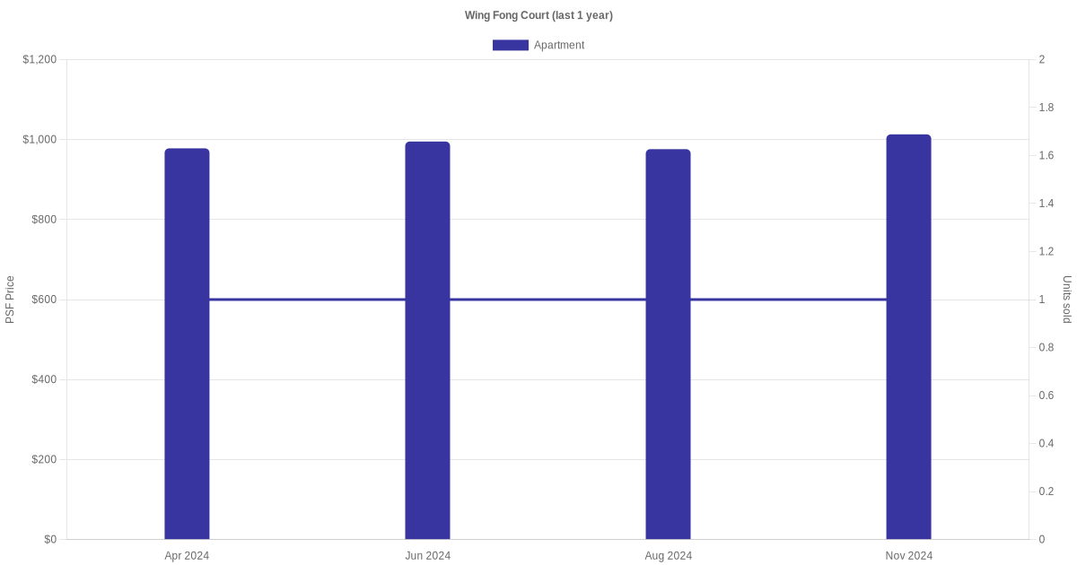 The graph below shows the average monthly transacted sale price for each of the apartment units for Wing Fong Court in the last 3 years. This is based on the transactional data collated for Wing Fong Court for the selected period.