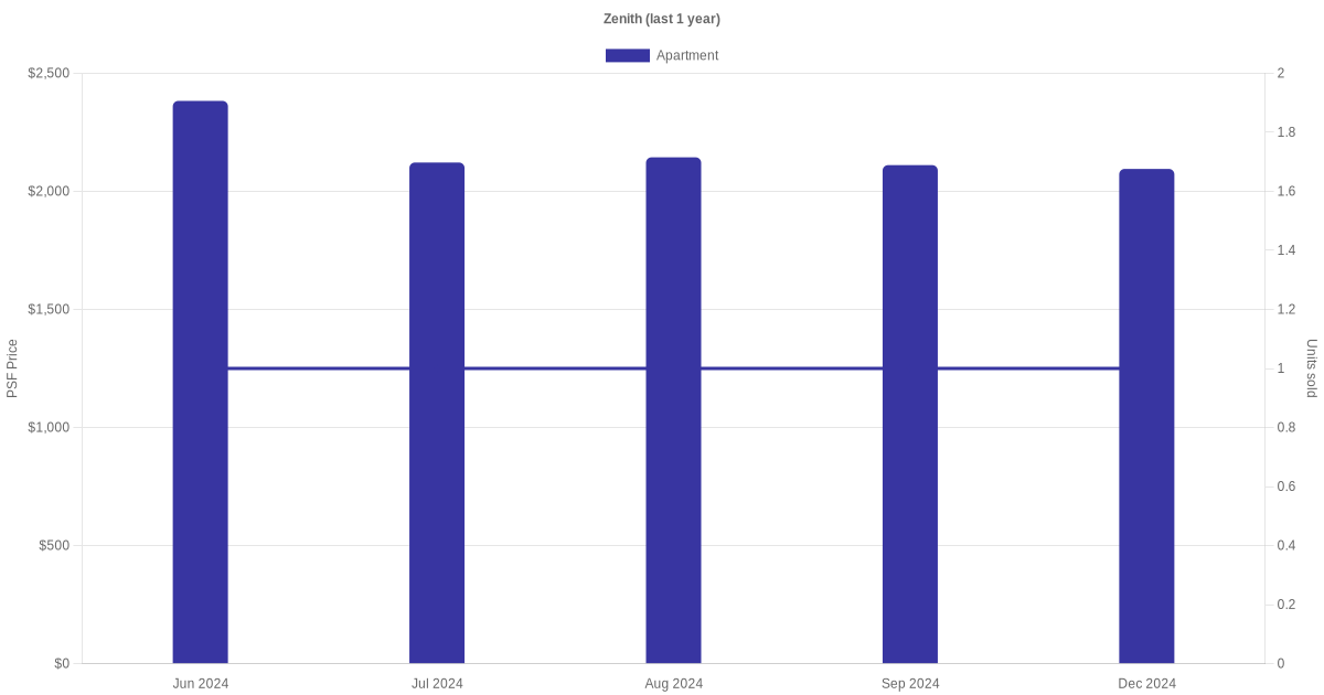 There were a total of 15 sales transactions for Zenith in the last 3 years, with the latest one recorded in Sep 2025. Disclaimer : our transactions data below does not include block numbers as the data is not available.